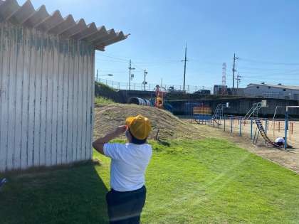 遮光板を使って、太陽を見ました。太陽の形を見たり、影の位置を見たり、気づいたことや疑問に思うことをノートに書きました。