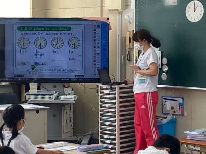 時計の学習です。ちょうどの時間と、何時半の学習です。短針の位置が、半の時は数字ぴったりをささないので、子どもたちが1番悩むところです。