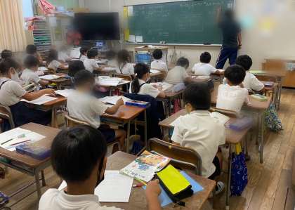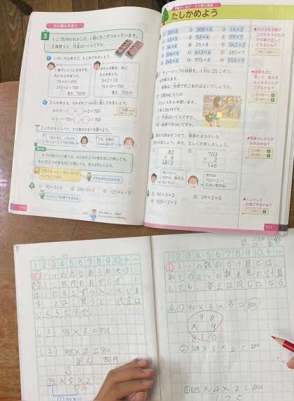 算数のかけ算のきまりについて、学習しています。工夫して計算することで、計算が簡単になることを見つけました。