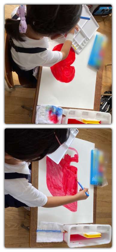 今回は、自分で絵の具を用意して、水でときながら描きました。