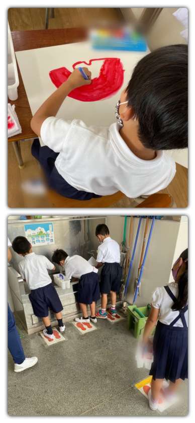 片付けも自分のセットを片付けました。ソーシャルディスタンスをとって並び、用具を洗って片付けました。