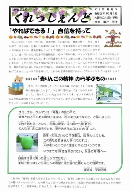 学校だより≪10月号≫を発行しました。ご覧になってください。