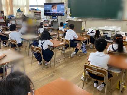 今日もTeamsを使って、校内放送で児童朝会を行いました。