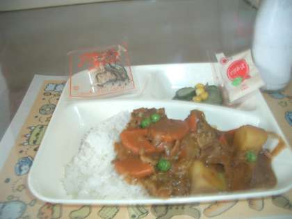 ポークカレー、ごぼうサラダ、アーモンドフィシュ、牛乳