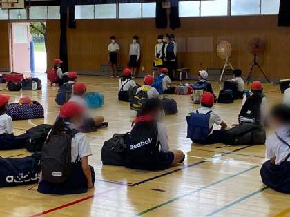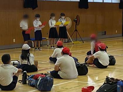 帰校式では、林間学習の思い出と、今回の学びを明日から生かしていくことについて、代表の人の挨拶や先生たちの挨拶で話を聞きました。