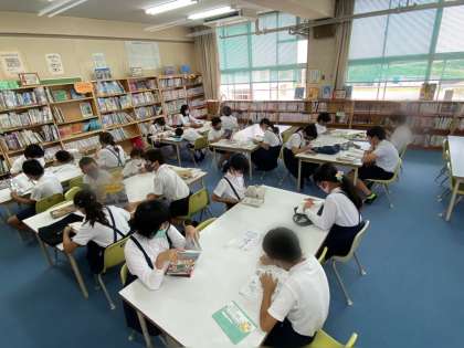 図書の時間、読みたい本を選んで、静かに読書をしています。