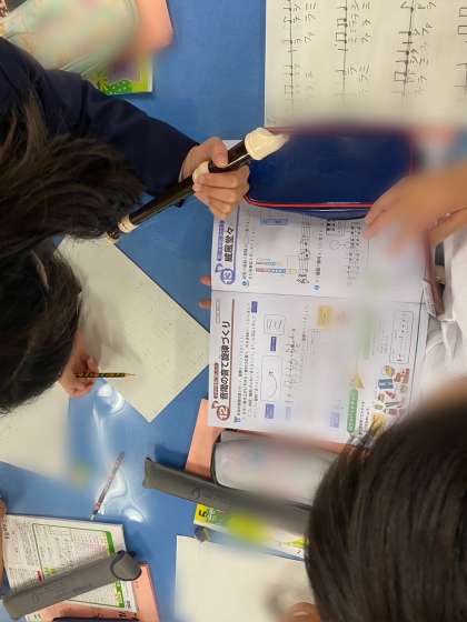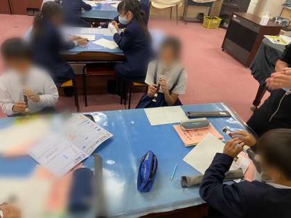 日本の音階の音と旋律をグループで考えて作って、リコーダーでパートに分けて練習しています。