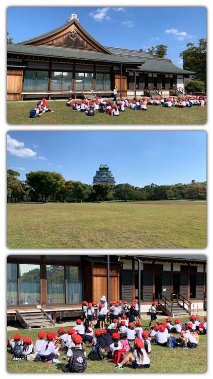 1年生と2年生合同のグループでオリエンテーションをしました。大手門を通って、西の丸庭園から迎賓館まで、みんなまとまって行動できました!
