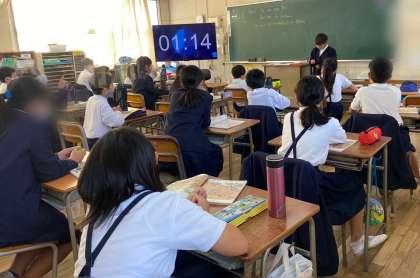はじめは、先生から言い方を教えてもらって、後半は、友達が英語のカードを見てジェスチャーした動きを周りの人が見て、周りの人は、動きから英語で答えていきました。