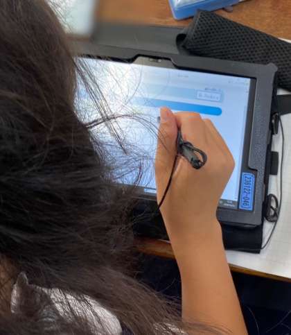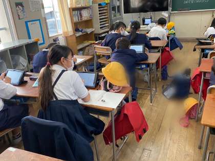 タブレット端末を使って、ラインズeライブラリを使って、自分のペースで、国語や理科の振り返り学習を行いました。