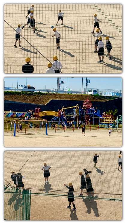 今まで我慢していた分、コンビネーション遊具には人だかりになっています。ボールや大繩で遊んでいる姿もあります。生き生きと遊んでいる様子が微笑ましいです。ただし、遊んだ後は必ず「石けんで手洗い」と「うがい」を忘れないでね。