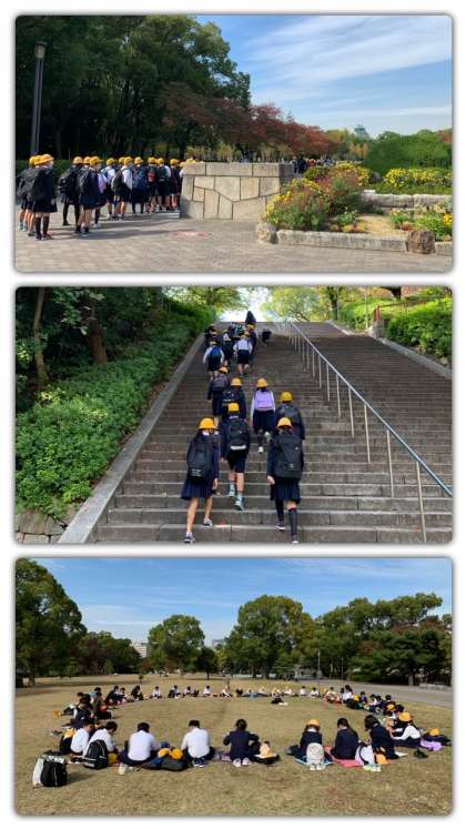 ふたたび地下鉄に乗り、大阪城へ向かいました。外に出るととても気持ちの良いお天気で、お楽しみのお弁当も最高でした。ありがたくいただきました。