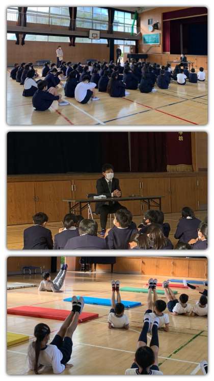11月10日(火)元シドニーオリンピック体操選手の藤田健一先生にお越しいただき、6年生を対象に講話と実技指導をしていただきました。