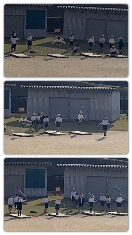 個人個人は、「うしろ跳びができるようになりたい」「片足跳びができるようになりたい」「X跳びができるようになりたい」「2重跳びができるようになりたい」など、それぞれの段階に応じて、目標をもって縄跳びにチャレンジしています。