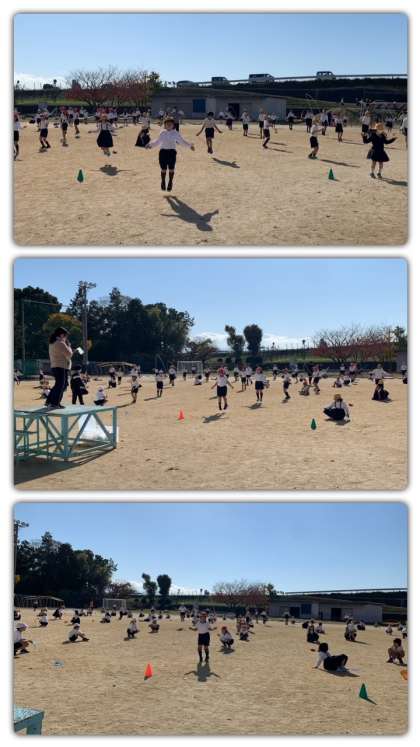 最初に前跳びを60秒、次に2重跳びを15秒を目標に、個人でチャレンジしました。ちょとしたひょうしに足に縄がからまって、悔しくも敗退となることもありますが、また次がんばろう!というあきらめない気持ちで、取り組んでいました。