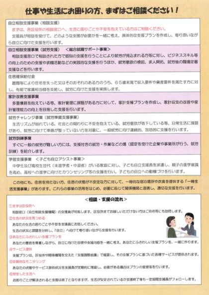 内容については、下記のちらし・お知らせをご覧ください。何かお困りごとがありましたら、ご相談ください。