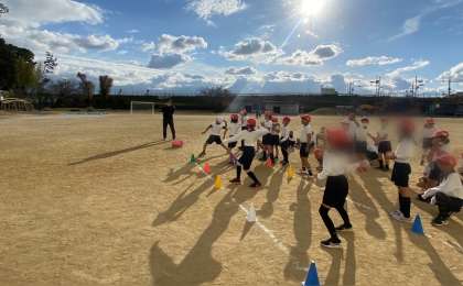 並んでボールを投げて、ネットに当てることを目標にして行いました。