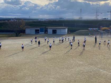 写真は、屋内スポーツのクラブ活動の様子です。寒さに負けず、しっかりと体を動かしていました。
