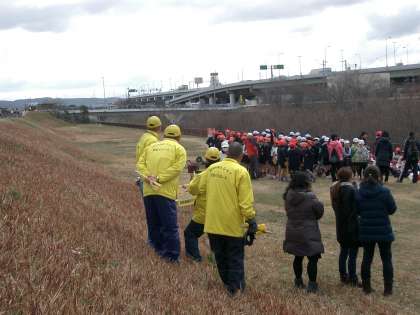 大和川の土手でマラソン大会
