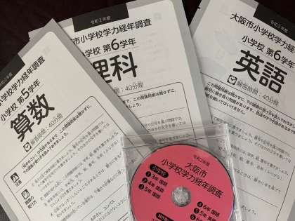 大阪市小学校学力経年調査の2日目が実施されました。今日は、3・4年生は算数と理科、そして5・6年生は算数と理科に加えて英語のテストもありました。