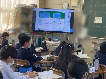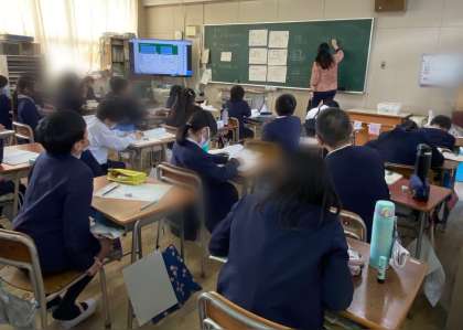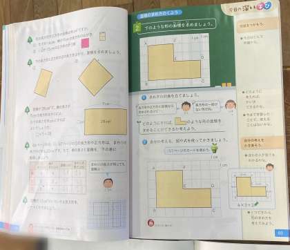 4年生は、算数でL字型の四角形の面積の求め方を考えました。