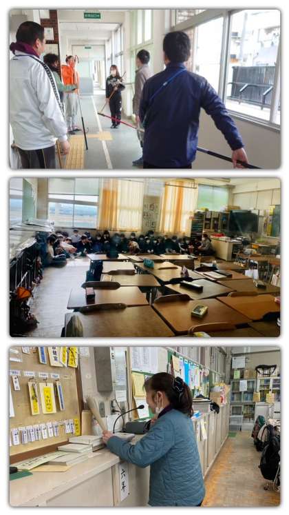 今年度は3回目の避難訓練をしました。1学期には火事、2学期は地震と津波、3学期は不審者侵入を想定した避難訓練を行いました。