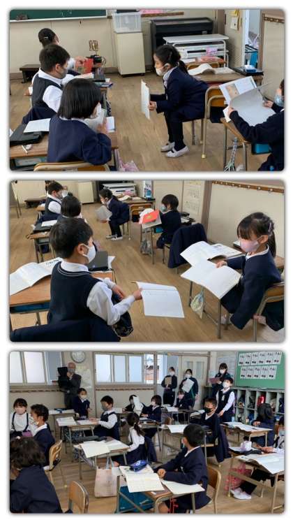 5限目、1年2組で国語科の研究授業が行われました。いつもは教育センターから教育指導員の先生が来られて参観していただくのですが、コロナ禍のため、来校されずにカメラを設置してリモートで授業を参観していただきました。