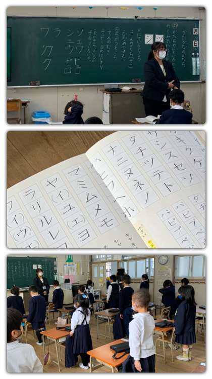 今日は「かたかなのかたち」という単元で、カタカナ同士よく似ている字を比べながら、どこがよく似ていて、どこが違うのか、そのことをしっかりと知った上で正しく使うことができるように学習しました。