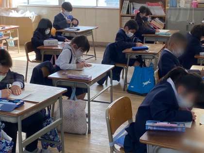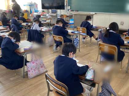 プリントにスラスラと書いている人もいれば、時間をかけて考えながら書いている人もいました。感想を書く欄があったので、問題についての感想を楽しんで書いていました。