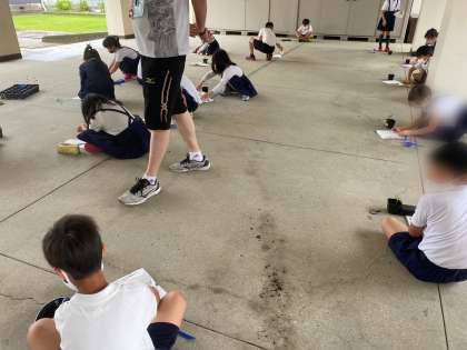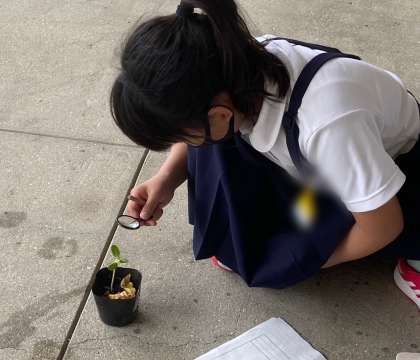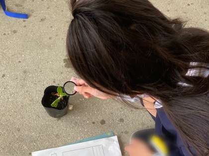 理科の学習で、前回植えた、種から芽が出てきました。成長した芽の長さや様子を観察しました。