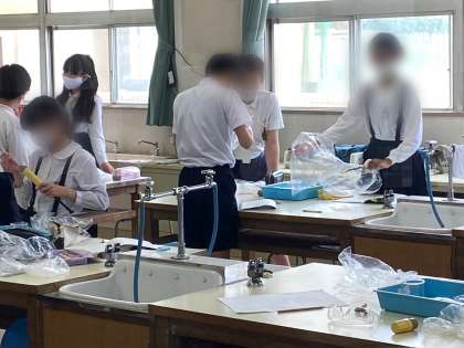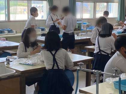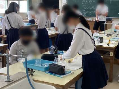 理科で、ビニル袋に空気を入れて、気体検知管で、酸素濃度、二酸化炭素濃度の割合を測りました。