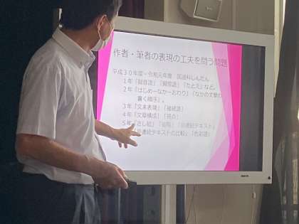 小学校教育研究会の国語部の部長先生にお越しいただいて、全教員が参加して、ご教示いただきました。