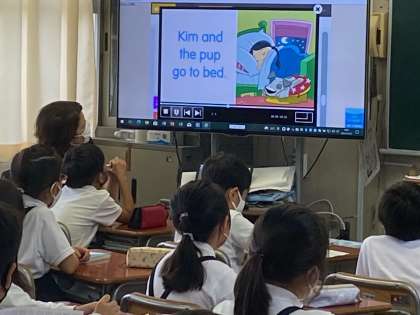 水曜日の朝の1時間目が始まる前は、イングリッシュタイムを行っています。
