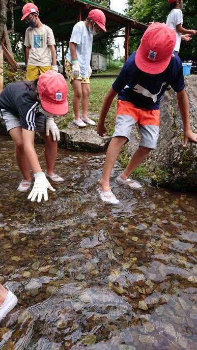 7/31 5年 林間学習 魚つかみ