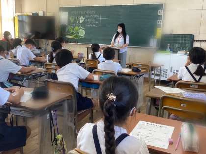 長吉小学校、長吉出戸小学校の栄養教諭に来ていただいて、栄養教育をしていただきました。