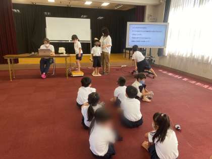 コロナウイルス感染防止対策で、多目的室の広いスペースで実施しました。
