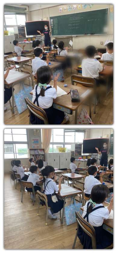 音楽では、リズムを覚えて、口で唱えながら、手でリズムを打っています。