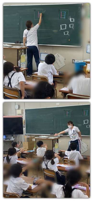 国語ほ、漢字の学習をしています。ひらがなの時のように、書き順に気をつけて、みんなで一緒に書いています。