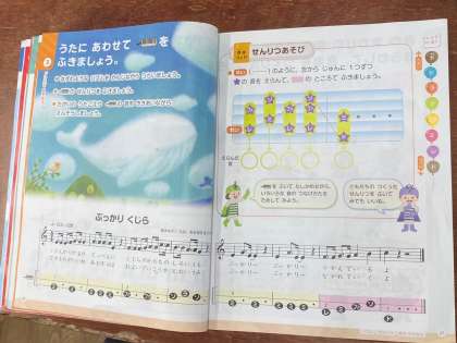 音楽で、曲を聞きがら、リズム打ちを行いました。できる人は、歌を歌いながら、リズム打ちにチャレンジしていました。