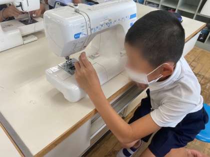 糸の通し方を図を見ながら、何度も繰り返して行っています。