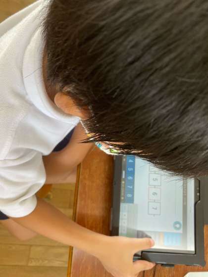 デジタルドリル「navima」を使って、復習を行いました。得意な部分はすいすい進められていました。苦手なところは、じっくりと時間をかけて行っていました。