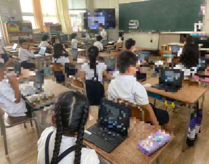 タブレット端末を使って、双方向通信の使い方、機能など、少しずつ使える部分を増やしています。