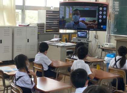 児童朝会での校長先生からの話は、新型コロナウイルス感染症が流行っている今、帰ってからの過ごし方についてでした。