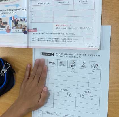You can do it.の言葉を使って、休日の過ごし方について、友だちと聞き合いました。