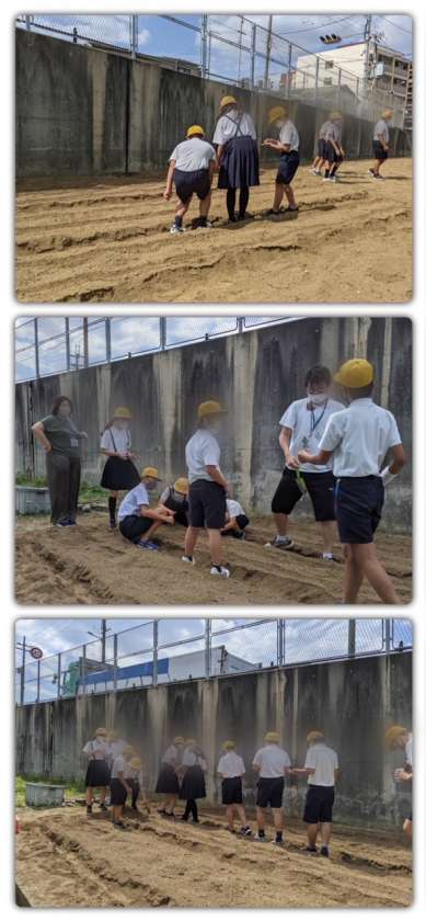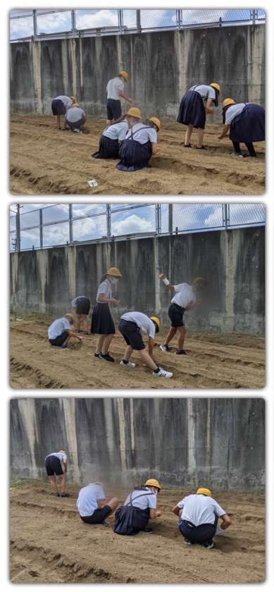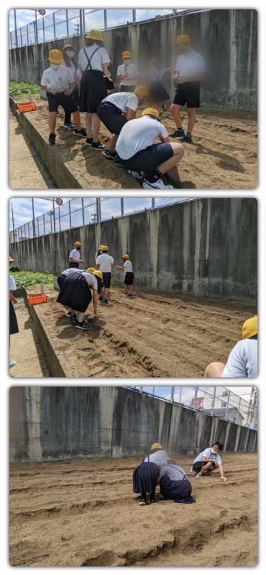 大根やキャベツなどを管理作業員さんに手伝ってもらって整備した学習園に植えました。