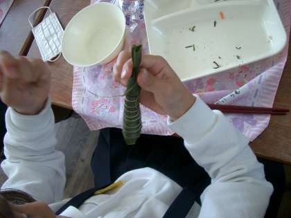 今日は牛肉のちらしずし、五目汁、ちまきでした。