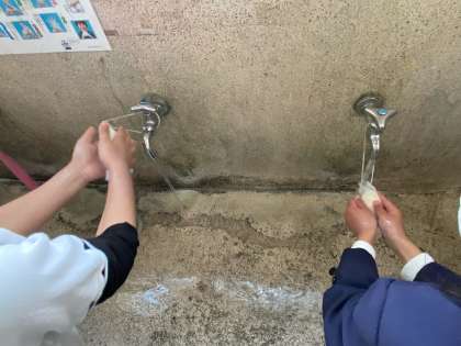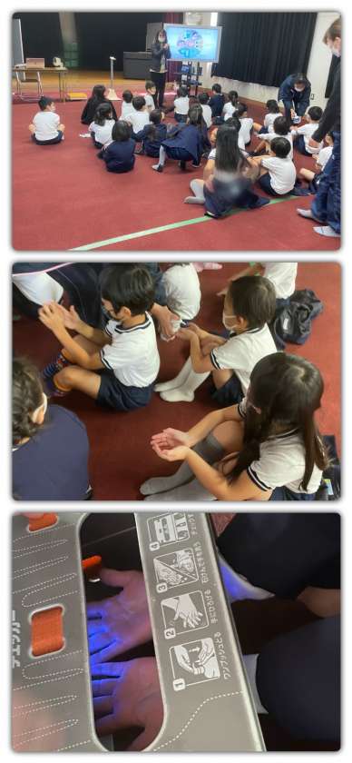 発育測定のあと、保健の先生から、手洗いについて指導していただきました。