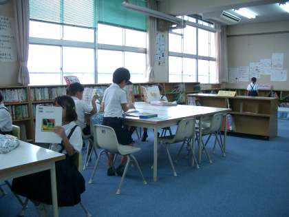 色は濃いブルーです。2学期になって、はじめての図書の時間です。