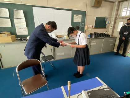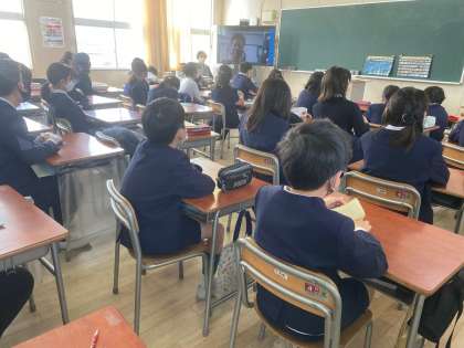 24日、リモートで修了式を行いました。