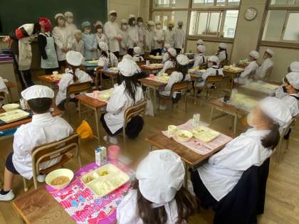 配膳が終わった後、今日はとても丁寧に1年生は6年生にお礼を言うことができました。6年生も、その声を聞いて、にっこりしていました。